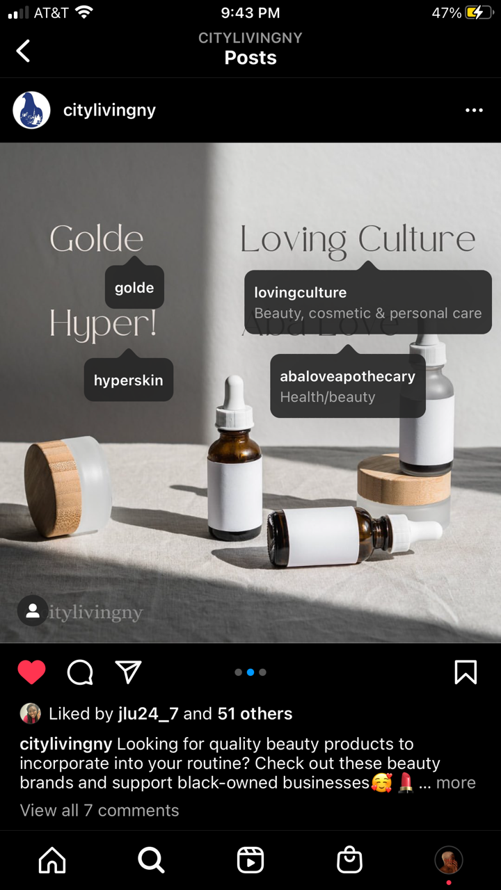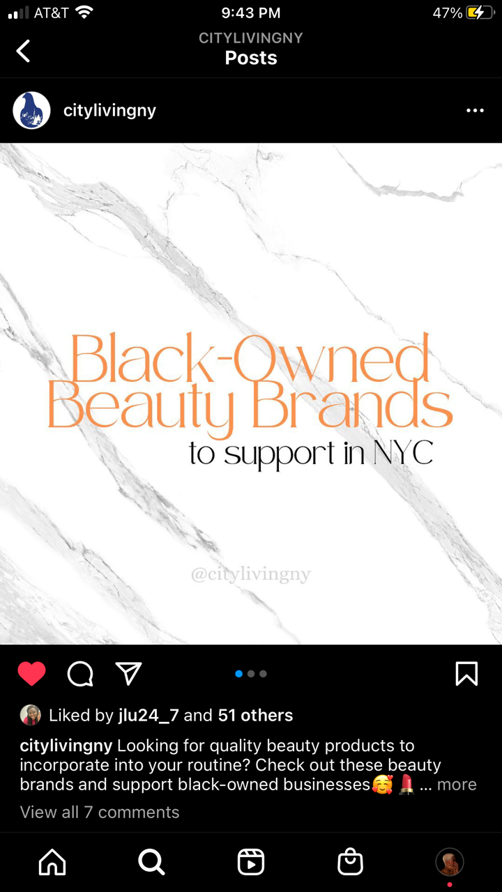 Sample: Instagram carousel post promoting New York based, black-owned businesses for Black History Month. Black-owned restaurants and bookstores were also promoted to uplift the black community during this holiday month.